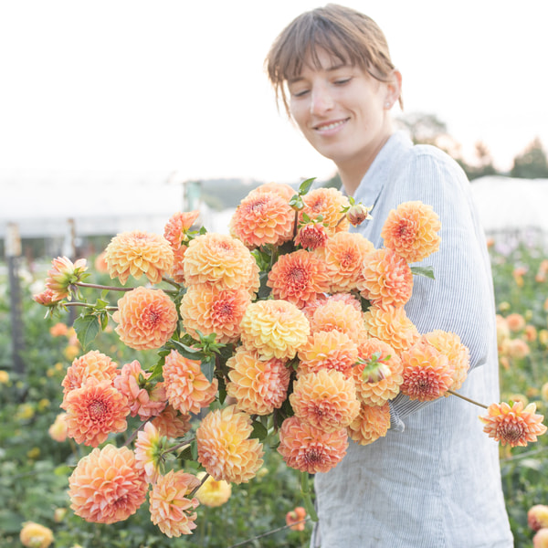 La lista delle 10 dalie più popolari nella nostra fattoria inizia con questa. Un colore amato da tutte le spose. Il rosa corallo con riflessi sfuma a tratti nell'albicocca fino al salmone chiaro. Una base essenziale per ogni giardino di dalie.